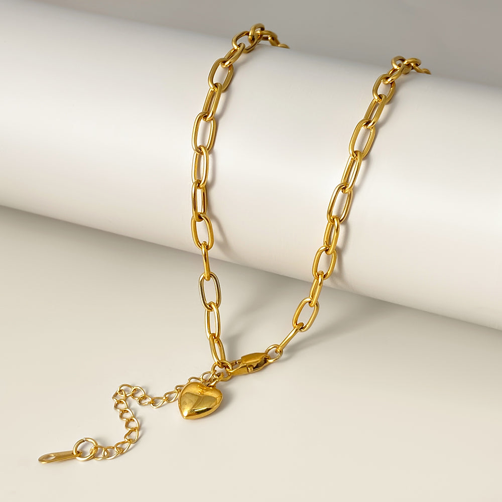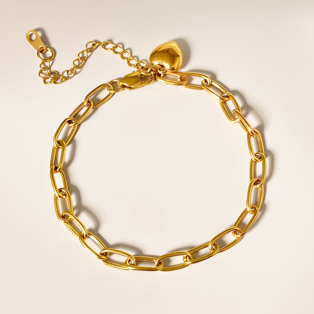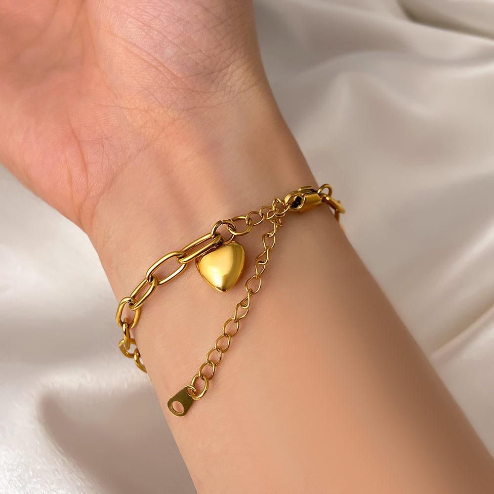 The page is the price of 12 pieces wholesale. The own factory can be customized privately. Wholesale quotation Contact us.This elegant jewelry set features a gold-plated heart bracelet paired with a matching necklace chain, both crafted with durable waterproof PVD plating. Designed for lasting shine and resistance to wear, this classic set combines timeless style with dependable quality, making it an excellent choice for daily wear or special occasions. Its refined design adds sophistication to any outfit while ensuring longevity.