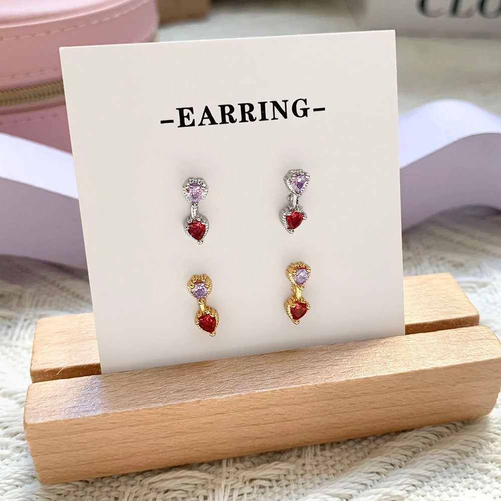 Wholesale Cute Designer 18k Gold Plated High Quality Cubic Zirconia Heart Stud Earrings for Women price of 12 pieces